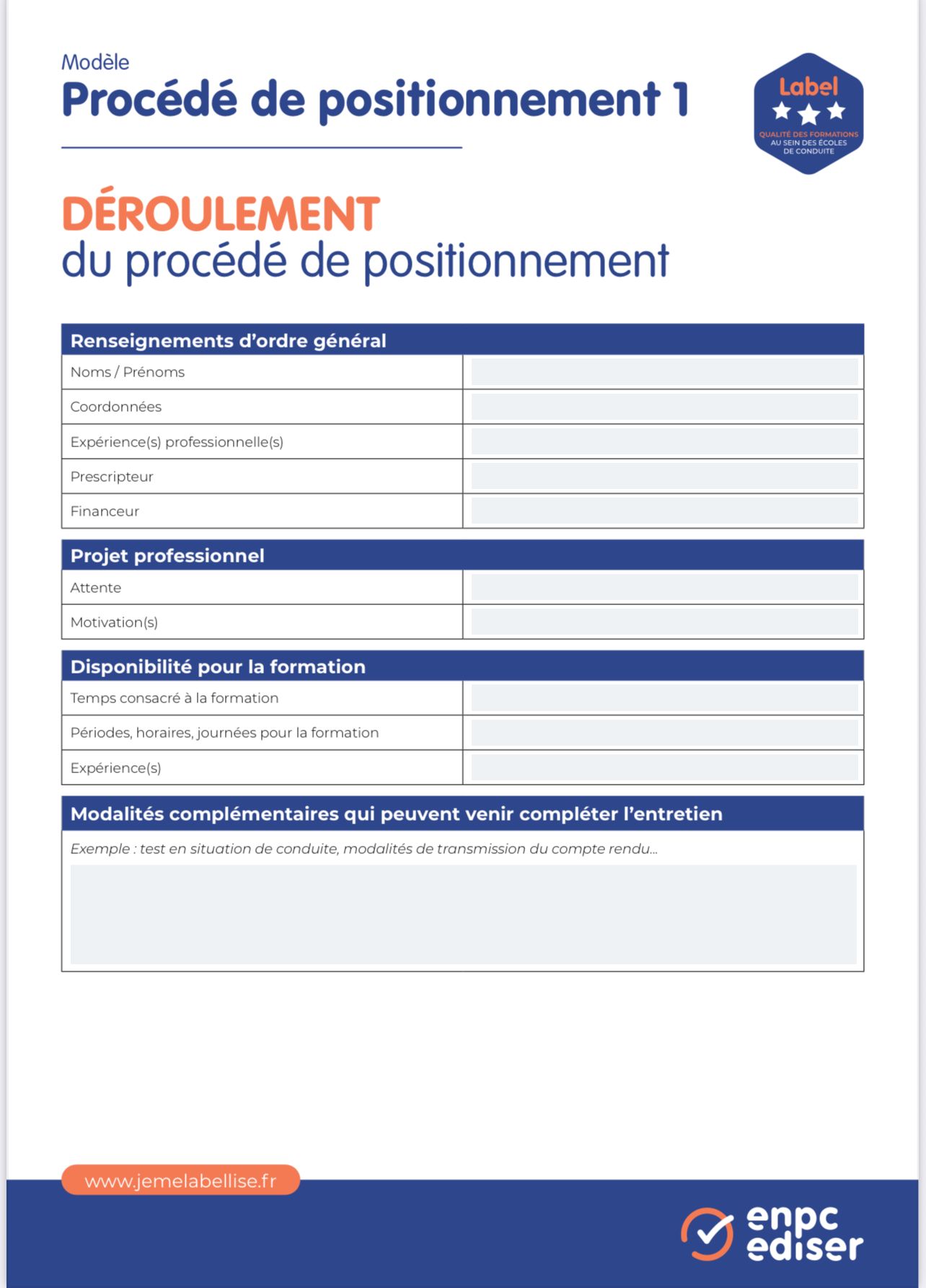 GRILLE D’ÉVALUATION DE DÉPART